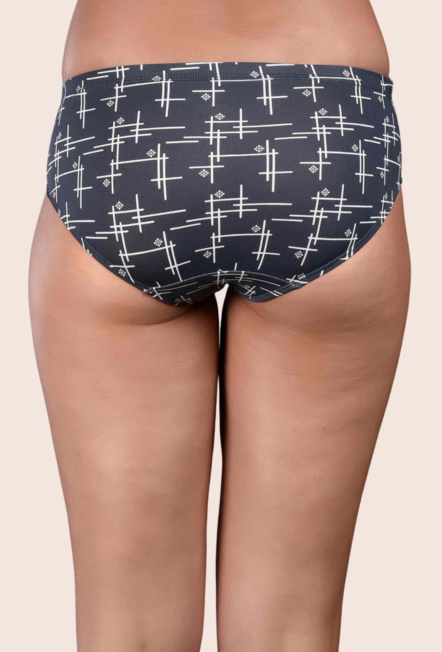 - Black printed mid-rise hipster briefs with outer elasticated waistband and double-layered contoured pouch