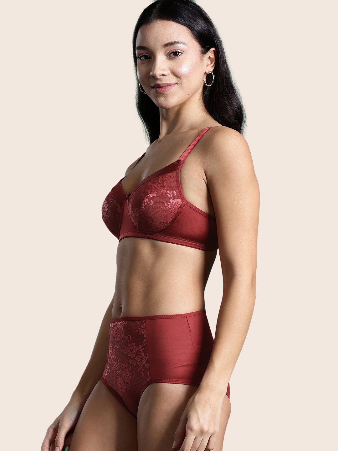 Maroon self-design lingerie set