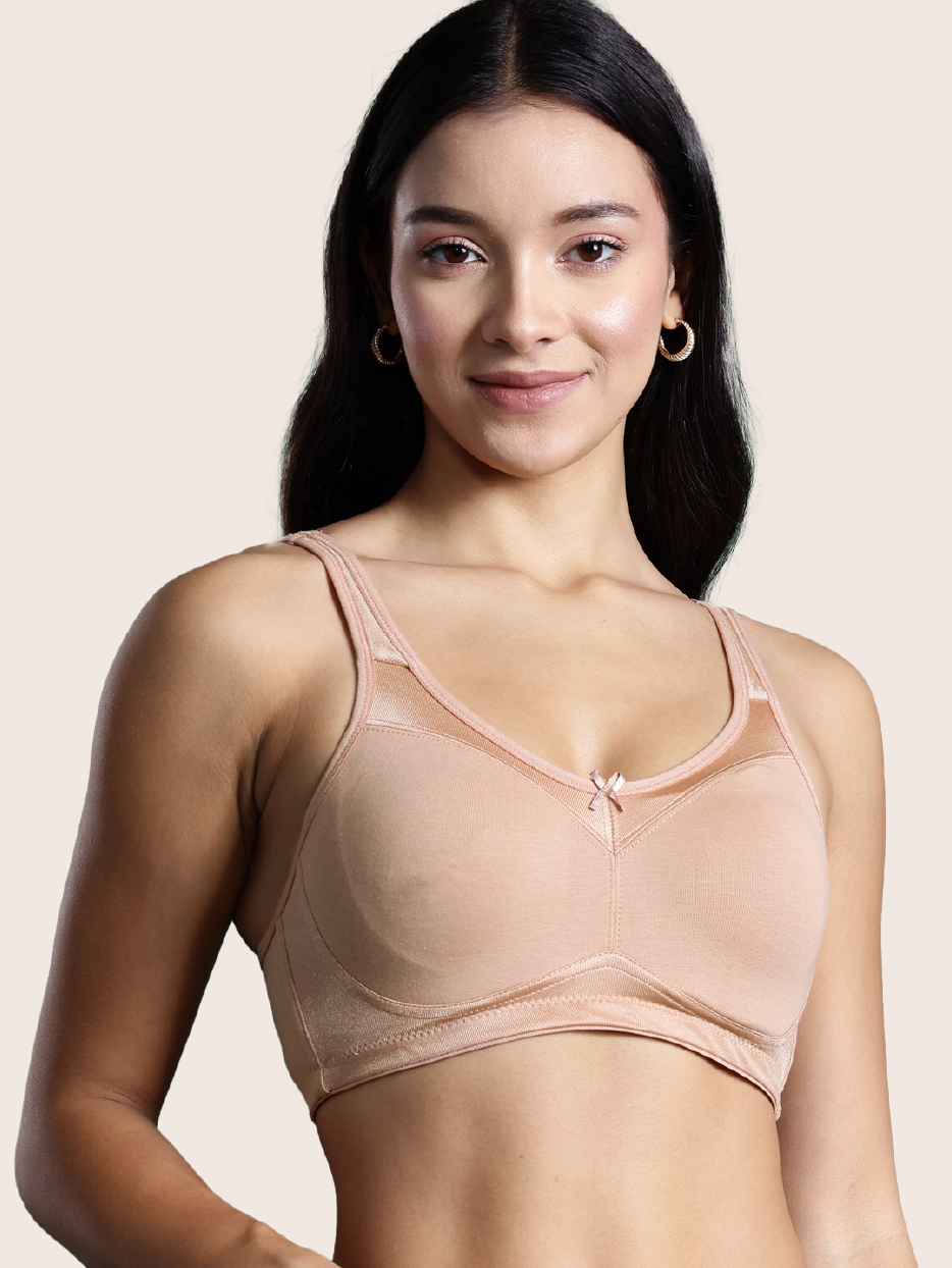 Designed for sheer comfort and reliable everyday support, this bra offers a naturally contoured silhouette. The full-coverage, non-wired and non-padded cups ensure a soft, breathable feel without any added bulk — making it ideal for daily wear. The seamless finish ensures smooth shaping under fitted outfits, while the regular straps and back closure provide a customized fit throughout the day.